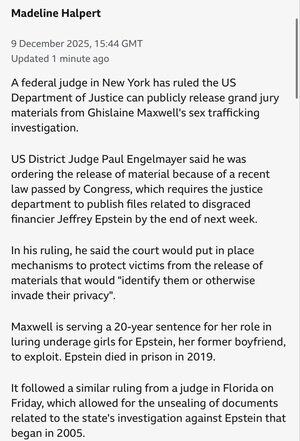 2人目の連邦判事が、エプスタイン(マクスウェル)の大陪審資料の公開を、エプスタインファイル透明@RepRoKhanna性法に基づくものを承認しました。私は議会を通過し(トランプも署名しました)、起きている。