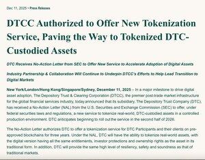 SECはDTCCに対してノーアクションレターを発行し、DTCがDTCに保管された資産をトークン化することを許可しました。