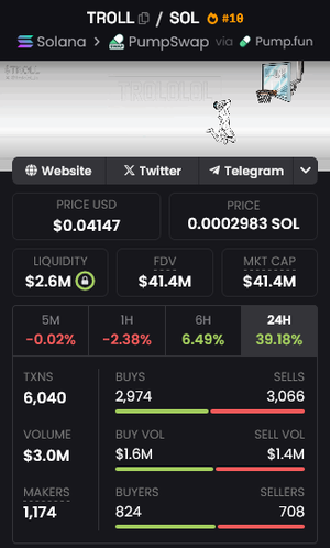 最新情報:$TROLL過去24時間で39.18%上昇し、4,000万ドルの大台を突破しました。