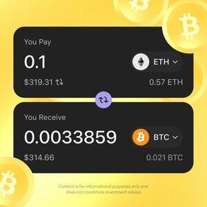 BTC er nå bare et bytte unna 🟠 Gå fra hvilken som helst token på Solana, Ethereum eller Base til BTC, rett fra lommeboken din.