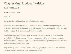 Fastlege @chapterone. Tidlig @supabase, @mercury, @ether_fi, @OndoFinance. Tidligere Tinder VP-produkt. Prøver å bygge det mest produktfikserte ventureselskapet på jorden.