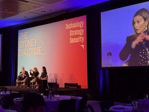 På Sydney Dialogue-konferansen i @ASPI_org forklarer Julie Inmam Grant Australias forbud mot sosiale medier for under 16 år, med ministre fra både Indonesia og PNG som deler at de utvikler parallell lovgivning.
