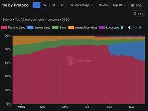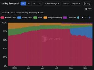 Kamino mister markedsandeler til @jup_lend i raskt tempo, se hver dag den voksende blå fargen nedenfor
