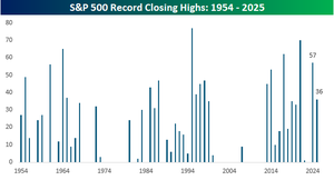 Det har gått 28 handelsdager siden S&P 500s siste rekordhøye stenging. Årets 36 rekordlukkinger, selv om de er under fjorårets 57, ligger godt over gjennomsnittet på 18,5, med 17 handelsdager igjen i 2025. Les dagens morgenprogram på