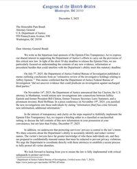 🚨 NETTOPP INN: TVERRPOLITISK GRUPPE I KONGRESSEN SKRIVER BREV TIL PAM BONDI OG KREVER TORSDAGSBRIEFING OM UTLEVERING AV EPSTEIN-FILENE.