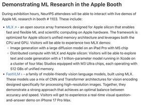 Jeg kommer ikke til å være på NeurIPS, men det blir noen morsomme MLX-demoer på Apple-standen: - Bildegenerering på M5 iPad - Rask, distribuert tekstgenerering på flere M3 Ultras - FastVLM sanntid på en iPhone