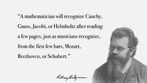 "En matematiker vil kjenne igjen Cauchy, Gauss, Jacobi eller Helmholtz etter å ha lest noen sider, akkurat som musikere kjenner igjen, fra de første taktene, Mozart, Beethoven eller Schubert."