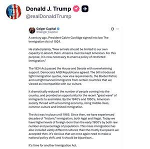 Trump la ut et innlegg på nytt som kritiserte Hart–Celler Act av 1965 og etterlyste en ny innvandringslov som også 🔥 begrenser den juridiske flyten