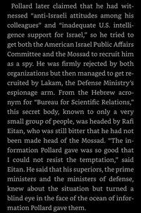 Jeg har alltid tenkt at den dritten burde ha gjort livet ut. Du vil ikke finne en større støttespiller for Israel enn meg, men jeg er amerikaner, og det kommer først. Du spionerer ikke på ditt eget land. Aldri. Han burde fortsatt vært i føderalt fengsel, og ethvert offisielt møte med ham burde slå ham.
