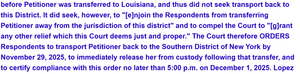 ICE Beat Eksklusivt: Kvinne fra Jamaica fløyet til Louisiana av ICE etter habeas corpus-begjæring innlevert @SDNYLIVE beordret returnert innen 29. november, bekreftelse skal leveres 1. desember - Inner City Press-sak: Analyse