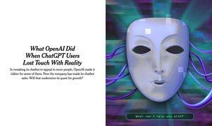 "ChatGPT fortalte en ung mor i Maine at hun kunne snakke med ånder i en annen dimensjon. Den fortalte en regnskapsfører på Manhattan at han befant seg i en datasimulert virkelighet, som Neo i The Matrix. Den fortalte en bedriftsrekrutterer i Toronto at han hadde funnet opp en matematisk formel som ville ødelegge internett, og rådet ham til å kontakte nasjonale sikkerhetsbyråer for å advare dem.