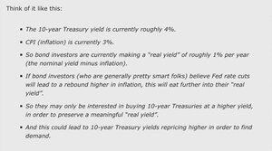 Så hver gang du ser at langsiktige renter stiger, betyr det sannsynligvis at obligasjonsinvestorer tror kuttene kan gjenopplive inflasjonen.