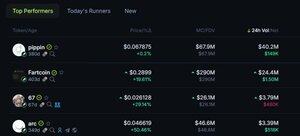 Mest omsatte pump fun-mynter målt i volum de siste 24 timene 👀 $PIPPIN 40,2 millioner dollar $FARTCOIN 24,4 millioner dollar $67 $3,79 millioner $ARC 3,39 millioner dollar