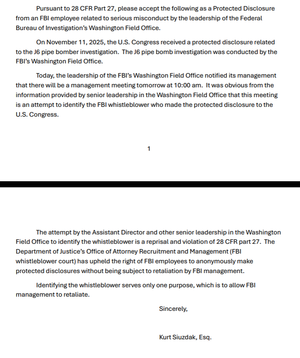 FBI @FBIWFO har planlagt et møte kl. 10 i morgen i strid med føderal lov (28 CFR del 27) som forsøker å IDENTIFISERE og GJENGJELDE mot en beskyttet føderal varsler.