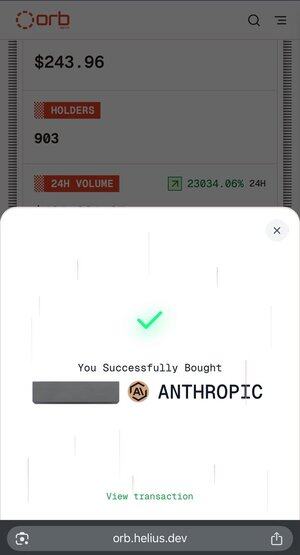 Kjøpte nettopp noen @AnthropicAI på @Orb_Markets ved å bruke @jup_mobile fra min @brave mobilnettleser på @solana Klikk, klikk, klikk Følg den sprettende ballen, så kan du bare eie ting 🤯🤯🤯