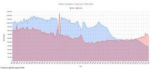Fødsler og dødsfall i Italia fra 1862-2024. (1/2)