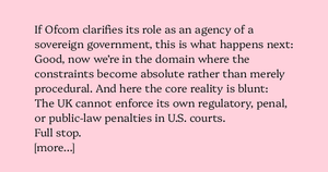 Jeg ba ChatGPT forklare hvorfor Ofcom, som en agent for den suverene britiske regjeringen, ikke kan håndheve straffer eller sanksjoner i USA mot 4chan &al