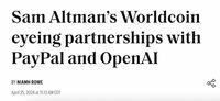 Tilbake i april '24 samarbeidet Sam Altmans andre selskap "Worldcoin" nesten med $PYPL.