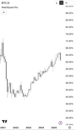 Rent sammenbrudd i BTC DOM. Med unntak av tilbaketrekkinger kommer det til å være alts/memes world til cycle tops.
