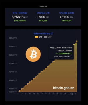 🇸🇻 El Salvador har kjøpt Bitcoin daglig; de har nå 6,258 BTC (~ $718 millioner). 👀