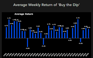 Mye dommedag på gang, men ikke bli overrasket om tradere kjøper dippen. Hvorfor? Fordi det fungerer - og har hatt i bokstavelig talt TIÅR. Her er en titt på den gjennomsnittlige ukentlige avkastningen etter en nedtur. Ikke så god pop som den produserte i 2021 og 90-tallet, men fortsatt positiv.