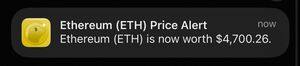 $ETH er nå $4,700. Bare 3,7 % unna $4,878 ATH.