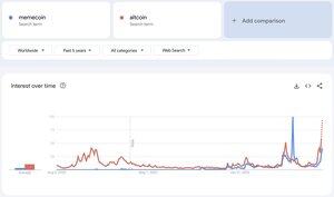 Normies kommer? altcoin-interesse for google-trender på ATH-er memecoin-interesse på vei til ATHs