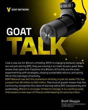 #GOATNetwork TVL har hoppet fra 35 millioner til 200 millioner på seks uker, noe som viser at Bitcoin driver det neste finanslaget.