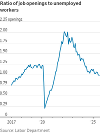 Forholdet mellom ledige stillinger og arbeidsledige tikket også lavere, til 0,979 fra 0,996 i juli.