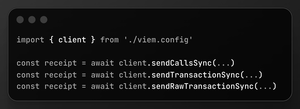 neste versjon av viem vil støtte synkron transaksjonsinnsending og returkvittering (i stedet for hash) – inkludert en reserve hvis RPC-behandleren ikke støtter 'eth_sendRawTxSync'/synkroniseringsinnsending ennå