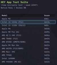 @FrameworkPuter Laptop 12 er ganske kul. Elsker estetikken. Ytelsen er heller ikke dårlig. 4m13s på HEY-testen min, som er ~M4-tempo. 500 på SP2.1. 28 på SP3.1. Nerdebenker som en M2. Alt for under $1,000.