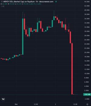 Solana memecoin $M 0N3Y har nettopp dumpet fra 24 millioner dollar til bare 170 000 dollar i markedsverdi. Et 99 % krasj på ett minutt