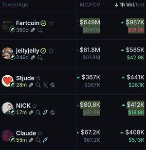 Topp Pumpfun-mynter for den siste 1 timen basert på volum: