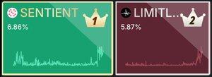 .@SentientAGI fortsetter å holde topplasseringen i pre-TGE mindshare med 6,86 %, etterfulgt av @trylimitless på 5,87 %.