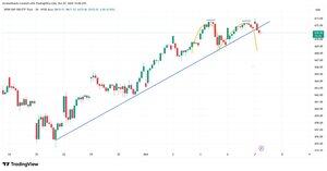 $SPY - Tirsdag reverserer ofte prishandlingen på mandag. Ideelt sett ser vi en ny ATH i morgen, og dette blir ugyldig, men verdt å være oppmerksom på en trendsammenbrudd og litt McDonalds M-handling.