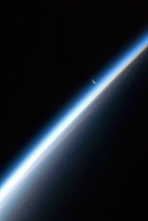 Månehalvmåne og jordens blå atmosfære fanget fra ISS 🌘