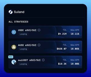 suiUSDT sSUI/SUI-strategien innebærer å sette inn suiUSDT som sikkerhet, og deretter bruke en sSUI/SUI looping-strategi på toppen for å tjene ekstra belønninger.