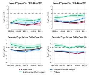For eksempel reduseres inntektsfordelen for svarte innvandrere i forhold til innfødte svarte noe kontrollerende for ting som urbanitet