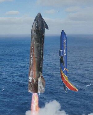 Lett å glemme hvor massivt Starship er, 52m langt vs 40m for en Max-8