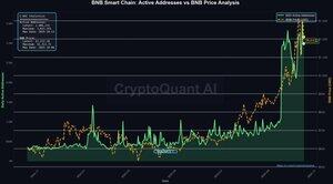 BNB på topp: 3,6 millioner aktive adresser og eksplosiv korrelasjon med pris