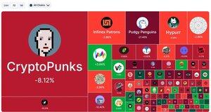 Sektorgrensen tok seg opp fra 5 milliarder dollar til 5,5 milliarder dollar, men blue chips som BAYC (–10 %) og Pudgy Penguins (–21 %) er fortsatt dypt i nedgang.