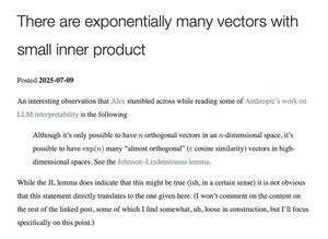 Så, i R^k, hva er maks nr. av parvise ortogonale vektorer? Hva med om de bare er "nesten" ortogonale, så ∣vi⋅vj∣<ε, ∀ i≠j?