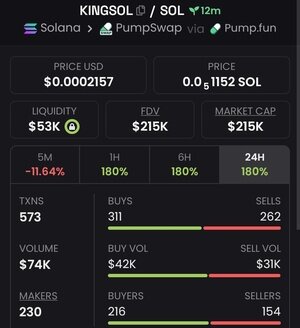 Jeg har nettopp kommet inn i $KINGSOL til $215K💸MC