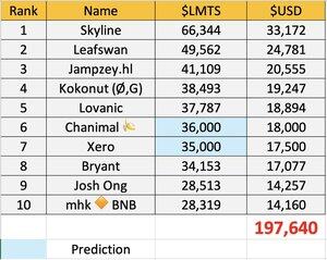 Bare de 10 beste mottok totalt $200 000, med førsteplassen @SkylineETH å få $33 000 (@ $0,5)