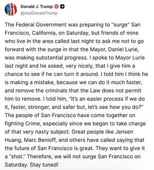 BREAKING: Trump bekrefter at han har avlyst den militære utplasseringen til San Francisco