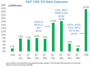 En fjerdedel av S&P 1500s totale verdi er i aksjer med en P/E over 50x rapportert inntjening.