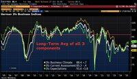 God morgen fra Tyskland, hvor bedrifter nok en gang setter sitt håp til fremtiden. Etter forrige måneds kraftige nedgang steg Ifo Business Climate Index til 88,4 i oktober fra 87,7 forrige måned. Men oppgangen skyldes ikke noen reell forbedring i nåværende forretningsforhold: Ifos Current Assessment-komponent falt faktisk ytterligere, fra 85,8 til 85,3. I stedet har Ifos forventningsindeks lysnet merkbart, og hoppet fra 89,8 til 91,6.
