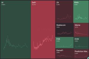 Mandag Mindshare: - Største vinner: X402, opp 15 ganger på bare 7 dager - FHE ledet av zama og privacy szn har også en sterk uke - RWA-er og AI får litt trekkraft igjen - memer ser ut til å forsvinne fra tidslinjen