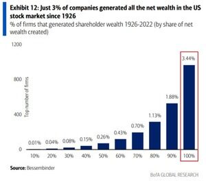 ALL nettoformue i det amerikanske aksjemarkedet siden 1926 har blitt generert av bare 3,44 % av selskapene.
