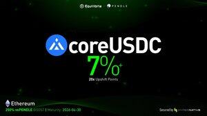 coreUSDC fra @upshift_fi er nå live på Equilibria – fullt forsterket under 250 % vePENDLE-effekten.